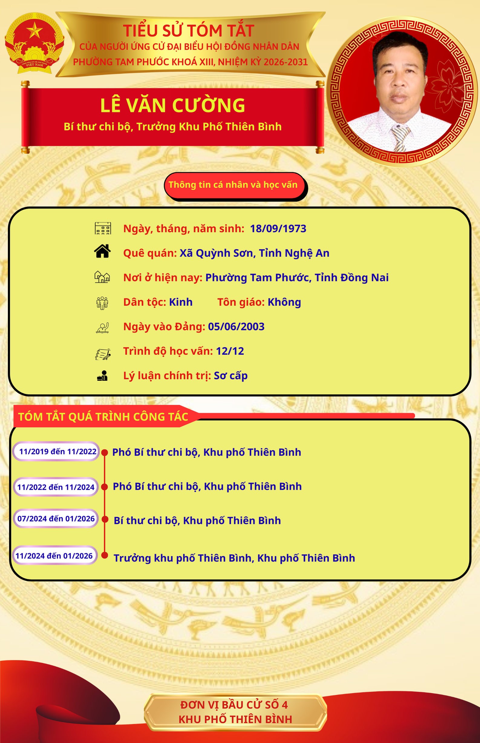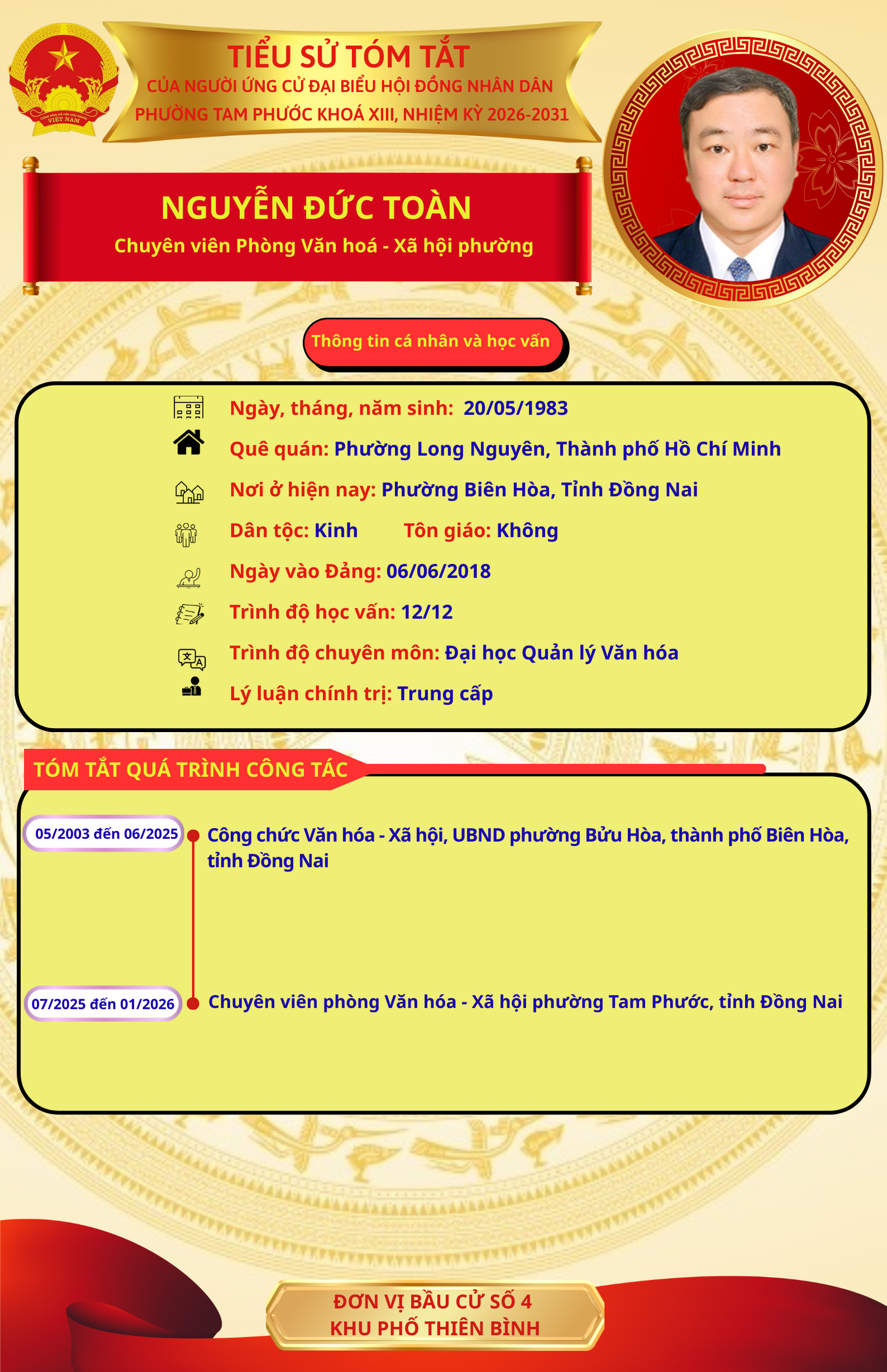 CHÂN DUNG NHỮNG NGƯỜI ỨNG CỬ ĐẠI BIỂU HĐND PHƯỜNG TAM PHƯỚC NHIỆM KỲ 2026-2031