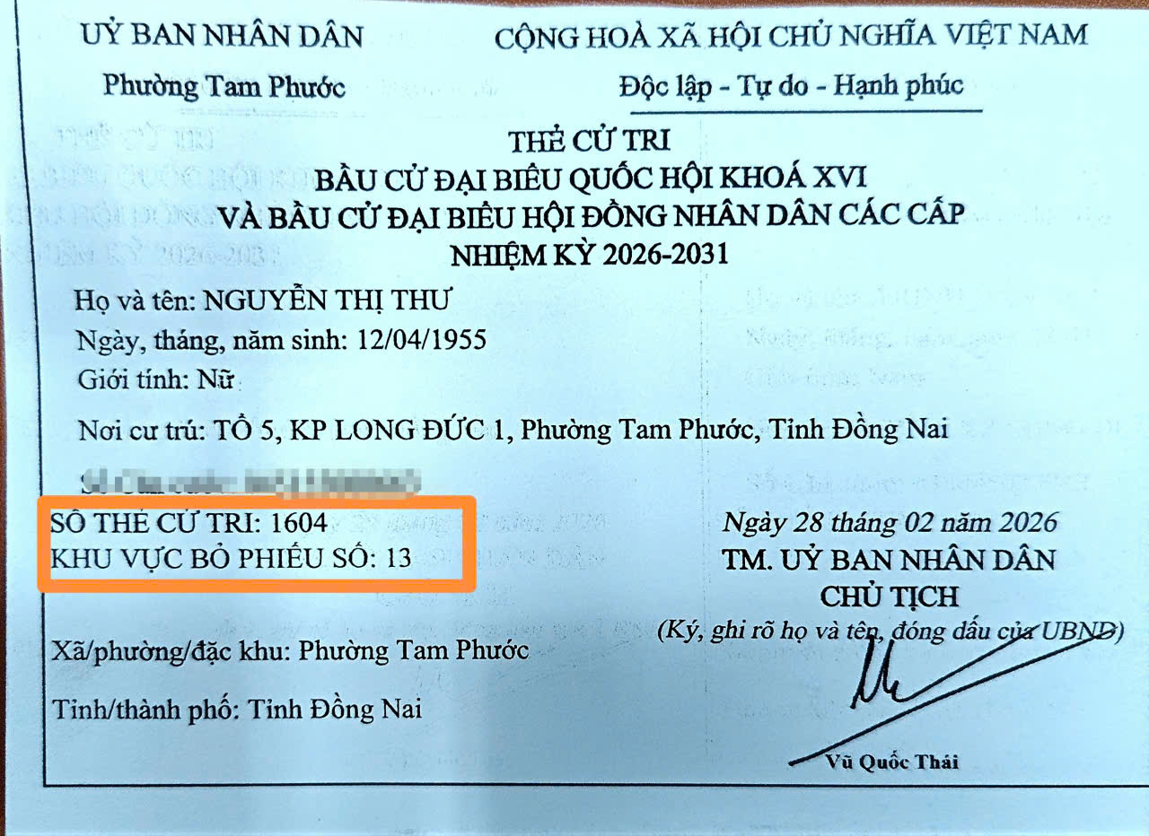• Kiểm tra kỹ thông tin: Xem rõ địa chỉ khu vực bỏ phiếu đã được ghi cụ thể trên Thẻ cử tri của mình.