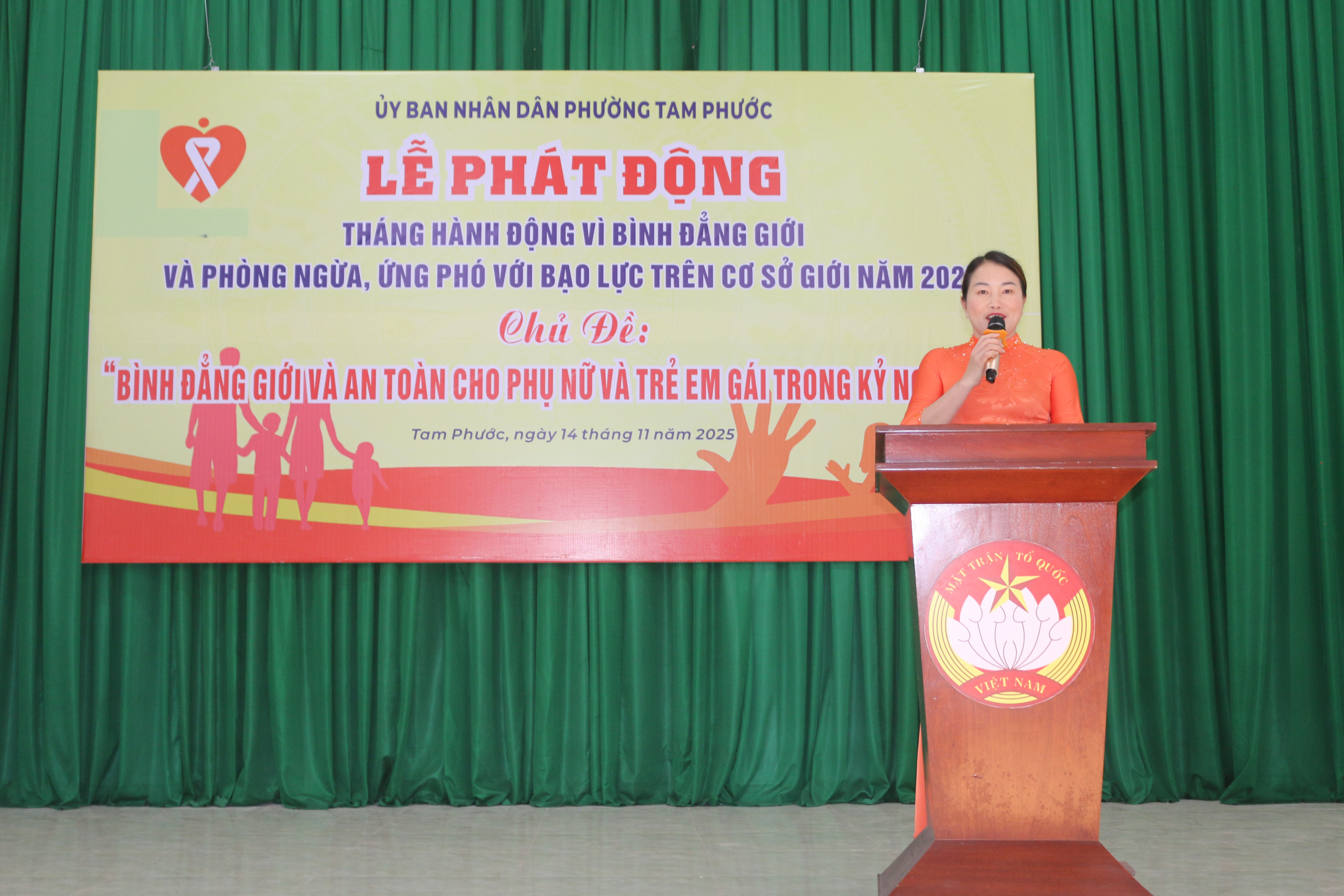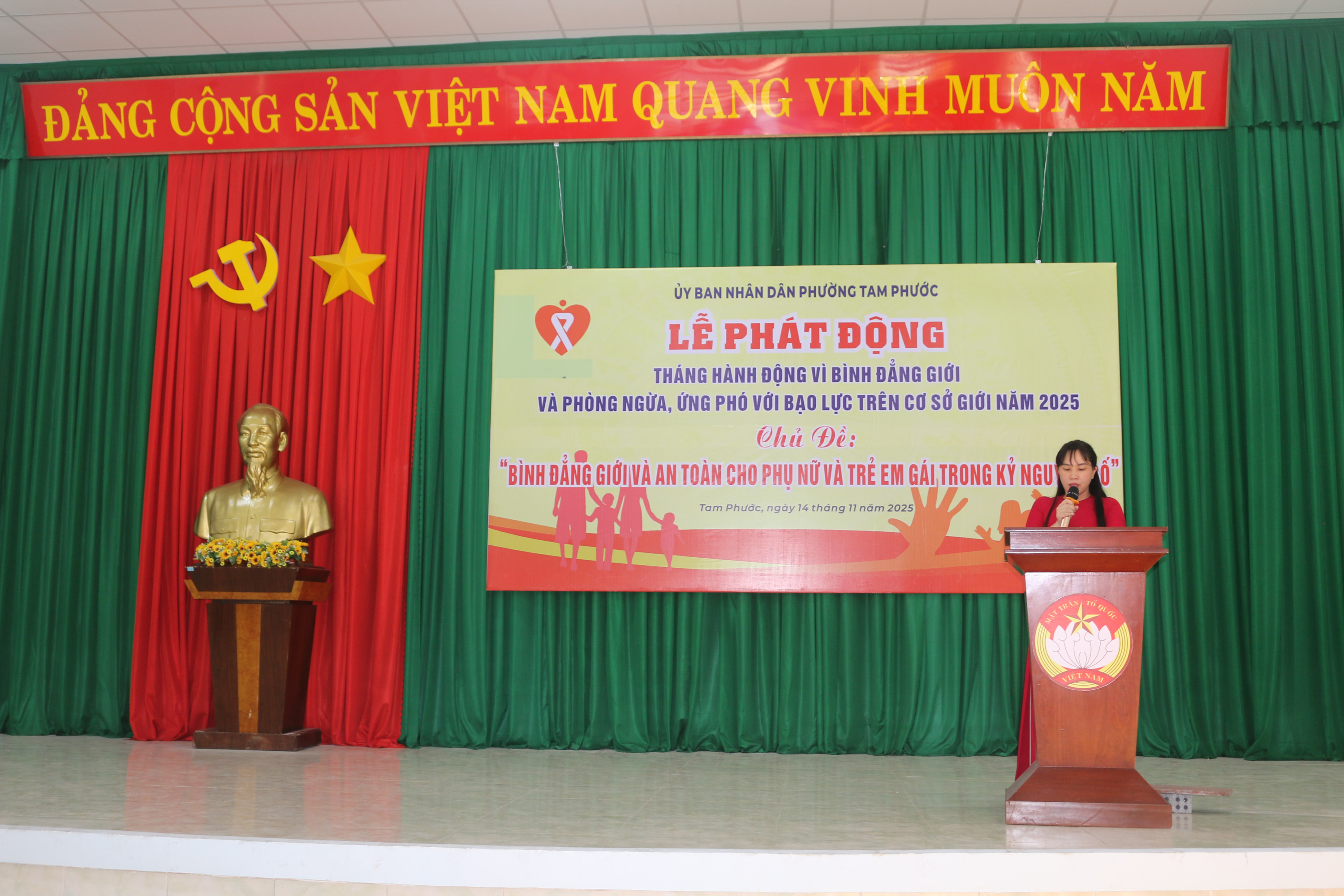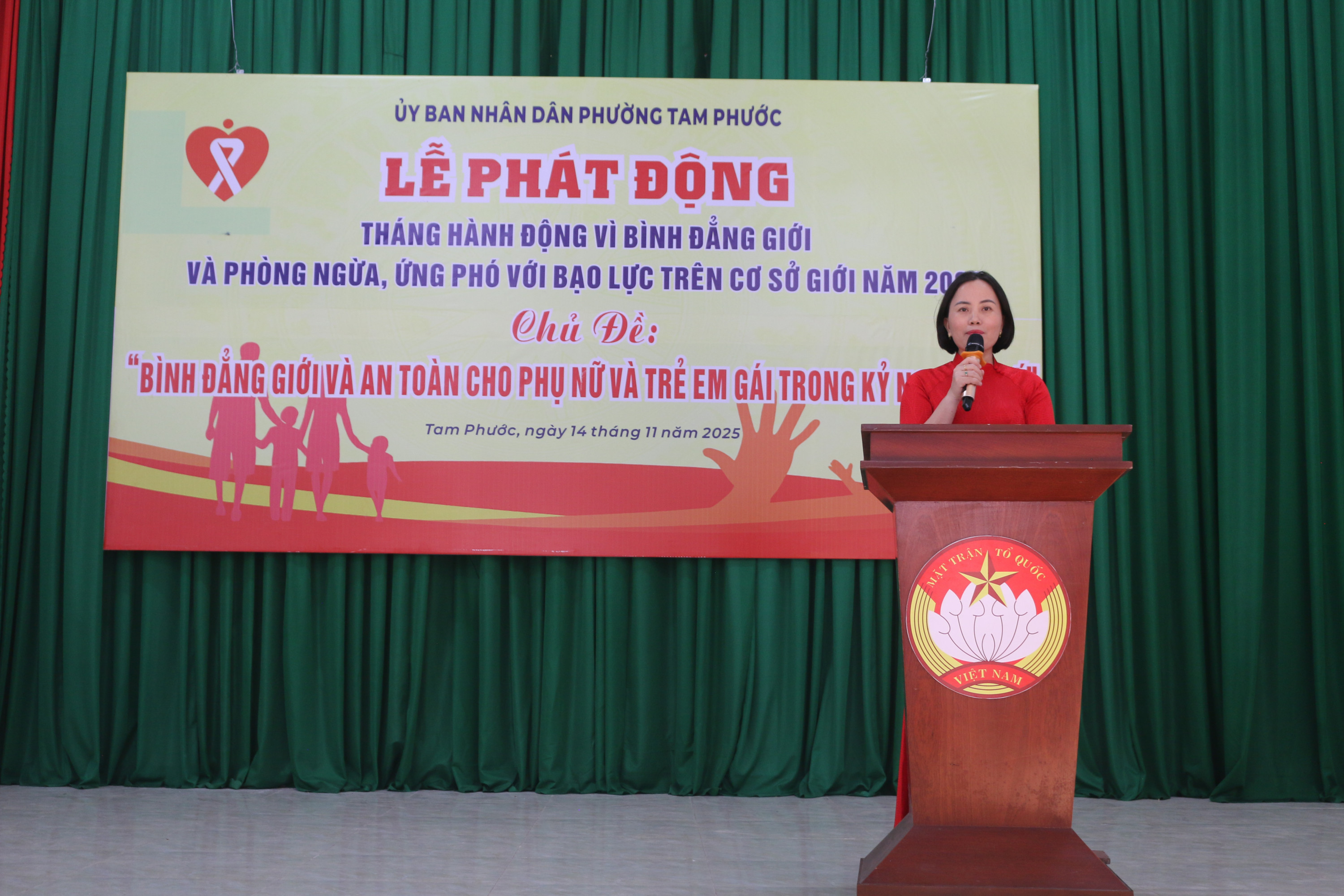 Chiều ngày 14/11/2025, tại Trung tâm Văn hóa Thể thao Học tập Cộng đồng Phường, Ủy ban nhân dân Phường Tam Phước đã long trọng tổ chức Lễ Phát động Tháng hành động vì Bình đẳng giới năm 2025, thu hút sự tham gia của đông đảo cán bộ, đoàn viên, hội viên và nhân dân trên địa bàn.