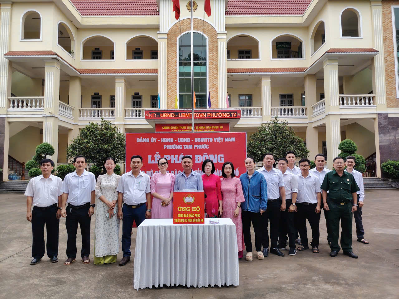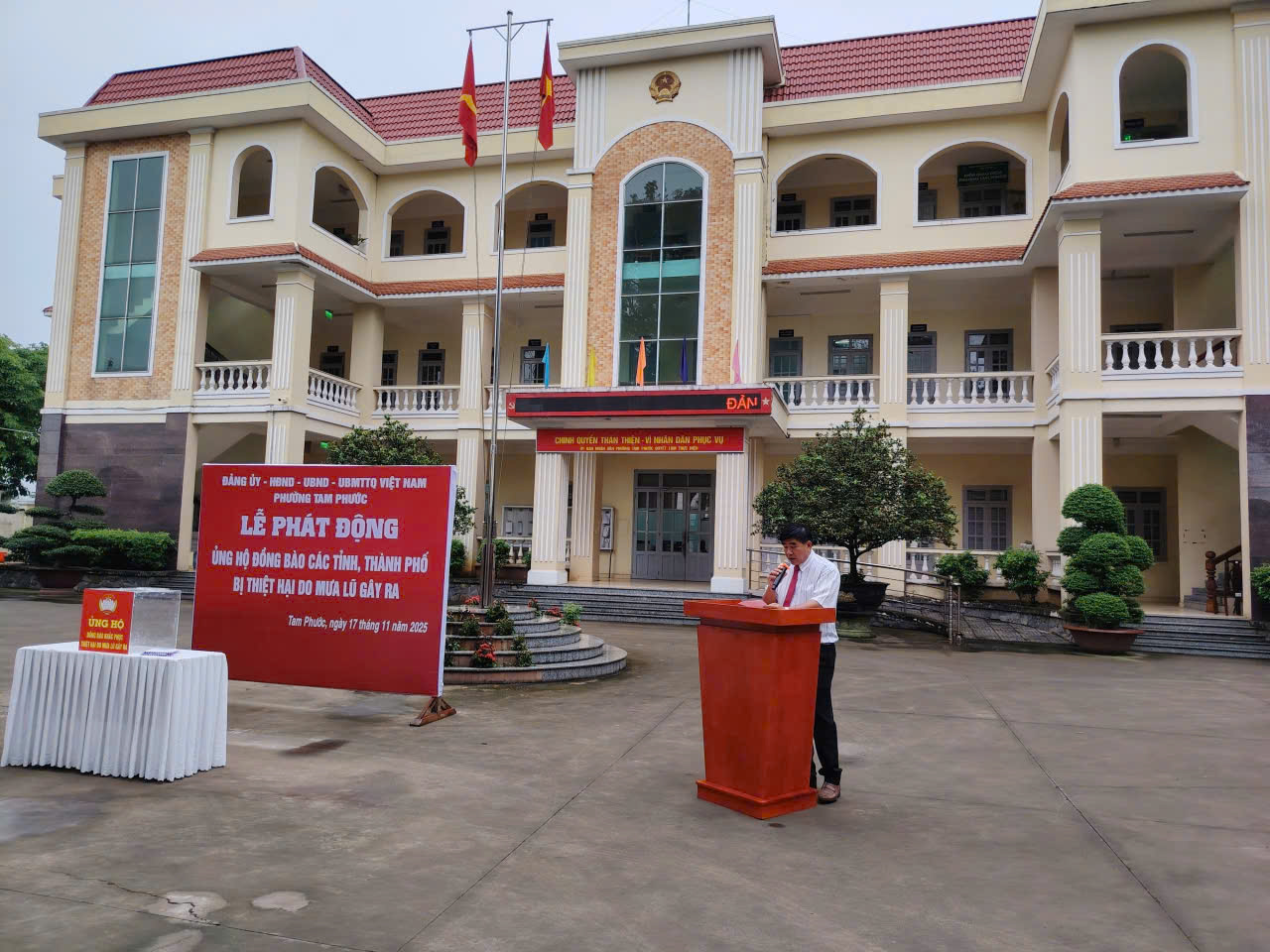 Tiếp nối truyền thống nhân văn ấy, sáng ngày 17/11/2025, tại trụ sở Phường, Ủy ban Mặt trận Tổ quốc Việt Nam (UB.MTTQVN) Phường Tam Phước đã tổ chức Lễ Phát động kêu gọi toàn thể nhân dân chung tay ủng hộ đồng bào các tỉnh, thành bị ảnh hưởng bởi thiên tai, bão lũ.